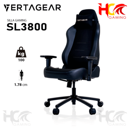 Estructura de acero, tapicería de cuero sintético, reposabrazos 3D y ruedas silenciosas. Capacidad de carga: 120 kg.
